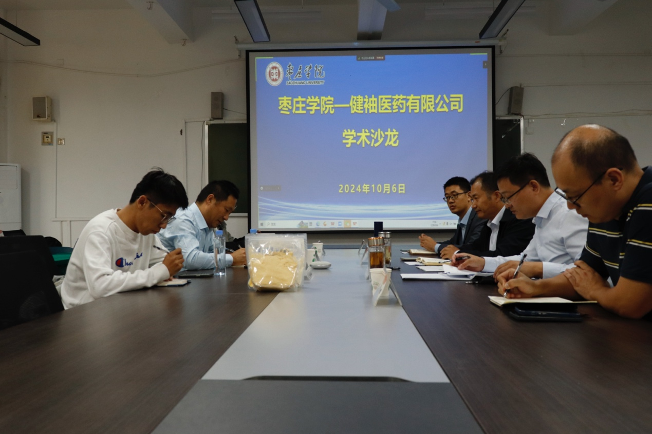 舒德伟董事长介绍了枣庄健袖生物医药有限公司基本情况、产品及技术需求。王京龙院长介绍了买球官方网站的师资队伍、专业设置、人才培养、学科建设等基本情况。