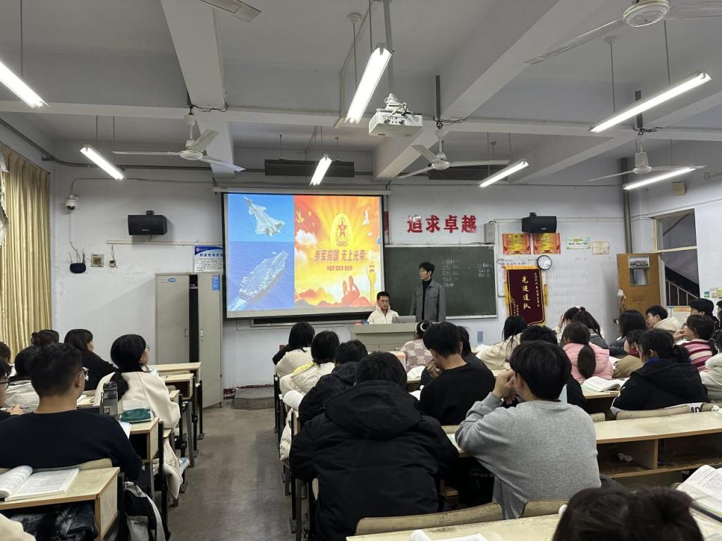 宣讲会首先介绍了征兵时间、条件、基本流程,接着详细讲解了参军入伍相关经济待遇、升学入学等入伍优待政策,最后针对学生提出的应征入伍是否影响应届生身份、如何选择入伍地等问题进行了现场解答。随后退役士兵学生代表回顾了自己的军旅生涯,分享了应征入伍的过程和收获,并详细介绍了退役后就业服务政策以及发展路径,鼓励同学参军入伍。