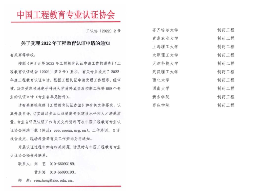 2.制药工程专业工程认证获得受理,引领专业内涵发展