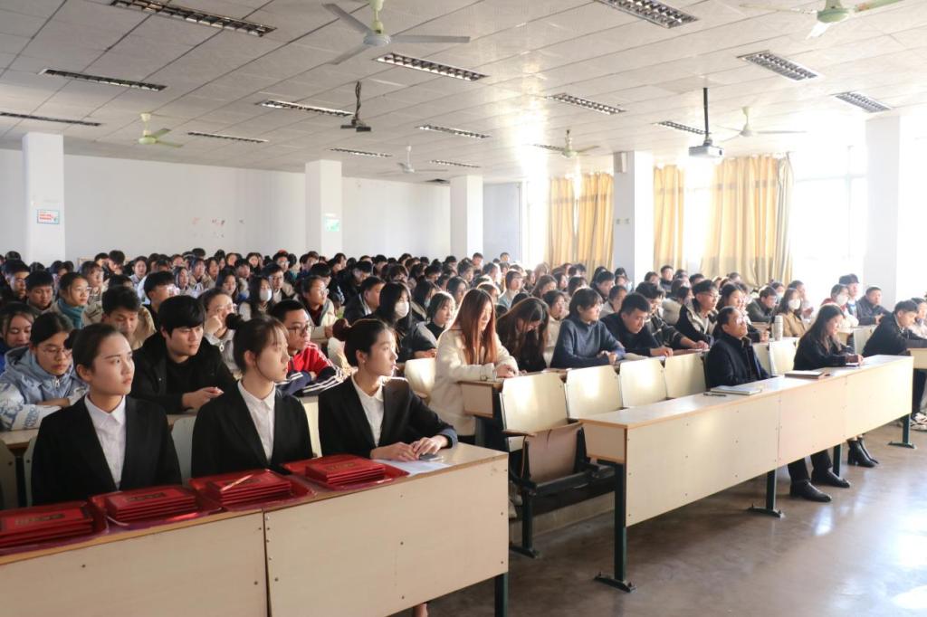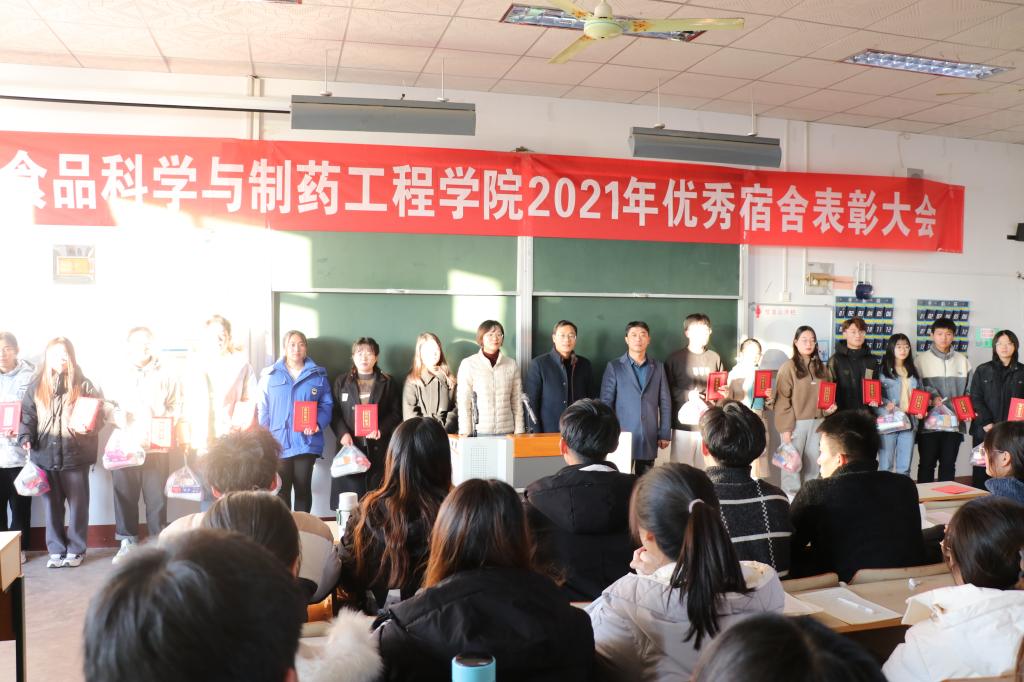 为进一步加强宿舍文化建设,落实宿舍管理工作,营造温馨、舒适的宿舍生活环境,食药学院于12月1日在文科楼319召开优秀宿舍表彰大会。会议由团总支书记孙星担任主持,买球官方网站党总支书记滕聿峰与辅导员周文灿、田甜出席本次大会。19-21级全体宿舍学生代表参加了此次大会。