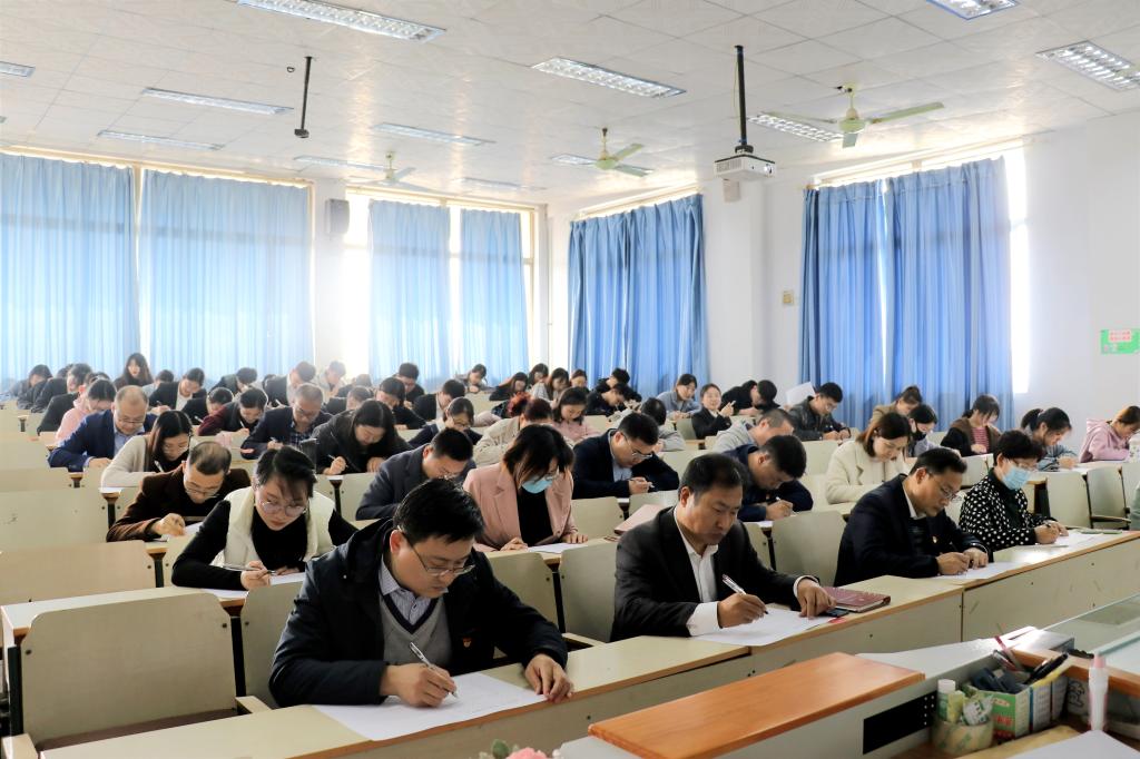 此次测试以闭卷形式,集中统一测试。学院党总支高度重视、精心策划,全体党员端正态度、佩戴党徽、认真答题。试卷内容涵盖了党史、新中国史、改革开放史、社会发展史等方面,包括单选、多选、判断等题型。测试现场,党员同志严格遵守纪律,认真进行答题,独立完成试卷,营造了浓厚的测试氛围。