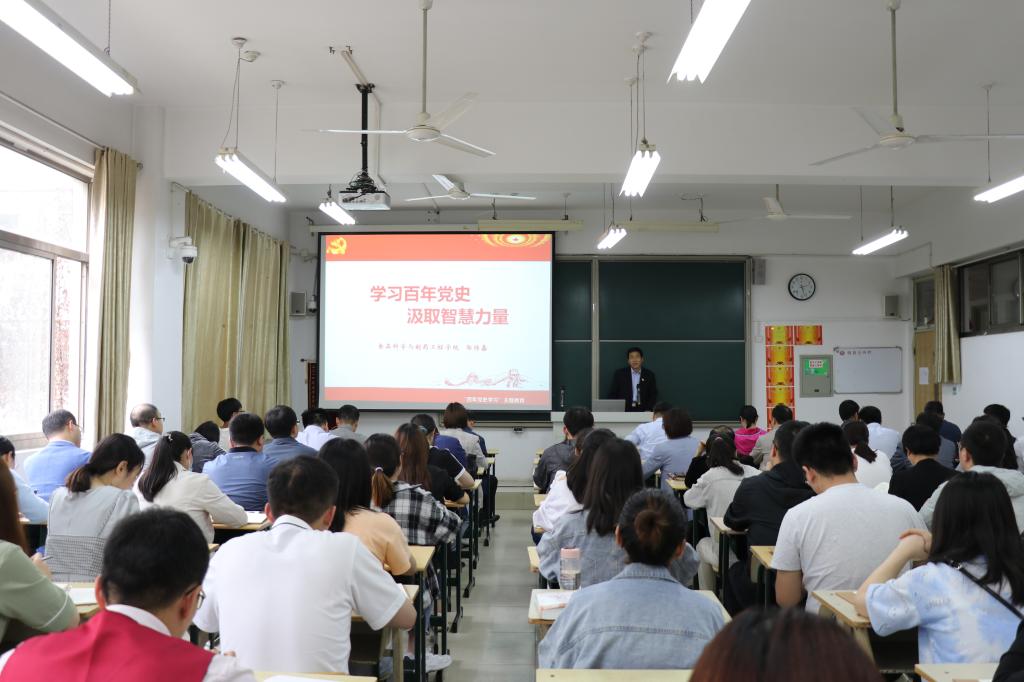 首先,苗素军一行到理工楼2207教室出席指导学院党史学习教育专题党课。专题党课以“学习百年党史,汲取智慧力量”为题,由买球官方网站党总支书记郭传鑫担任主讲,学院全体教职工和学生党员参加。