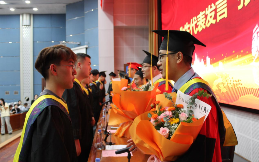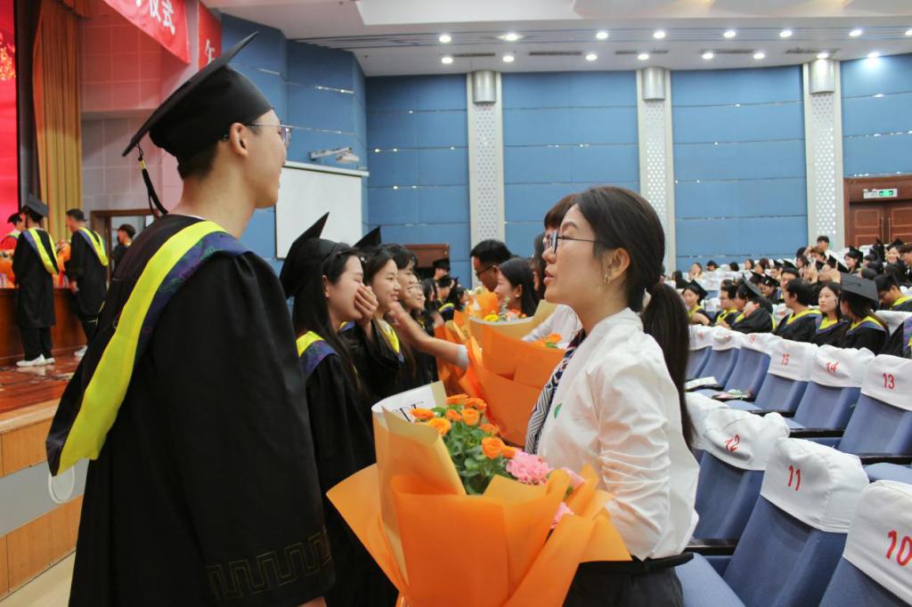 校生代表郭心怡深情发言,向圆满完成学业,即将扬帆起航踏上人生新征程的师哥师姐送上最衷心的祝愿;毕业生代表张道灿分享了成长感悟,表达对母校的感恩之情;教师代表鹿颜寄语毕业生要保持终生学习的理念和求真务实的态度,拼搏进取、积极作为,以努力奋斗成就精彩人生。