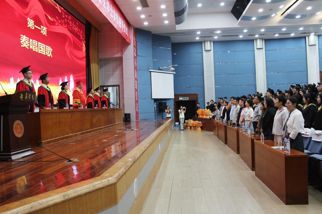 随着嘹亮国歌的响起,毕业典礼正式拉开帷幕。学院副院长孙中贯宣读了《关于授予2025届买球官方网站本科毕业生学士学位的决定》。