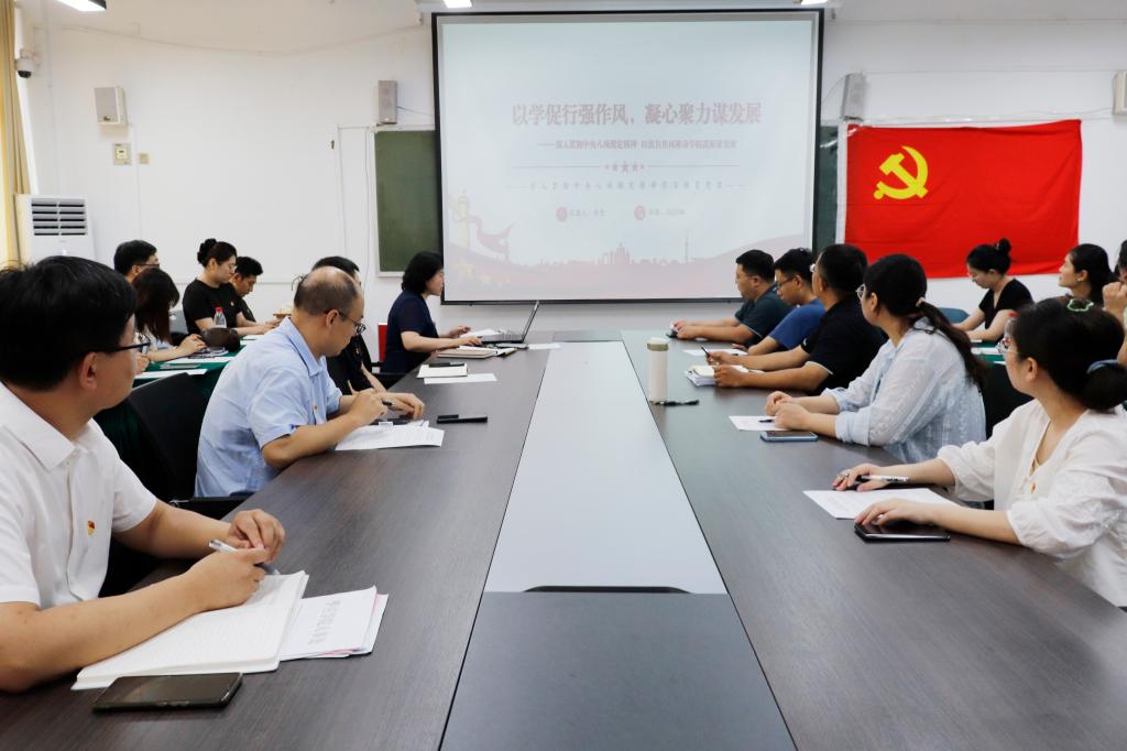 为深入学习贯彻习近平总书记关于作风建设的重要论述,全面落实中央八项规定精神,持续深化学习教育成效,6月30日,买球官方网站党委书记华莹于文科楼213会议室,为学院全体教工党员讲授了一堂主题为《以学促行强作风,凝心聚力谋发展》的学习教育专题党课。