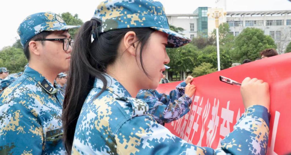在主题横幅集体签名环节,同学们郑重签名,以行动表达爱国承诺。活动最后,党委副书记黄成亮主讲的“燃烧吧·青年”主题薪火讲堂将现场氛围推向高潮。他寄语全体同学:厚植家国情怀,将远大理想转化为踏实行动;放眼广阔世界,将个人成长融入时代发展;锤炼卓越品格,将不懈奋斗作为青春底色,激励大家以青春之我勇担时代使命。