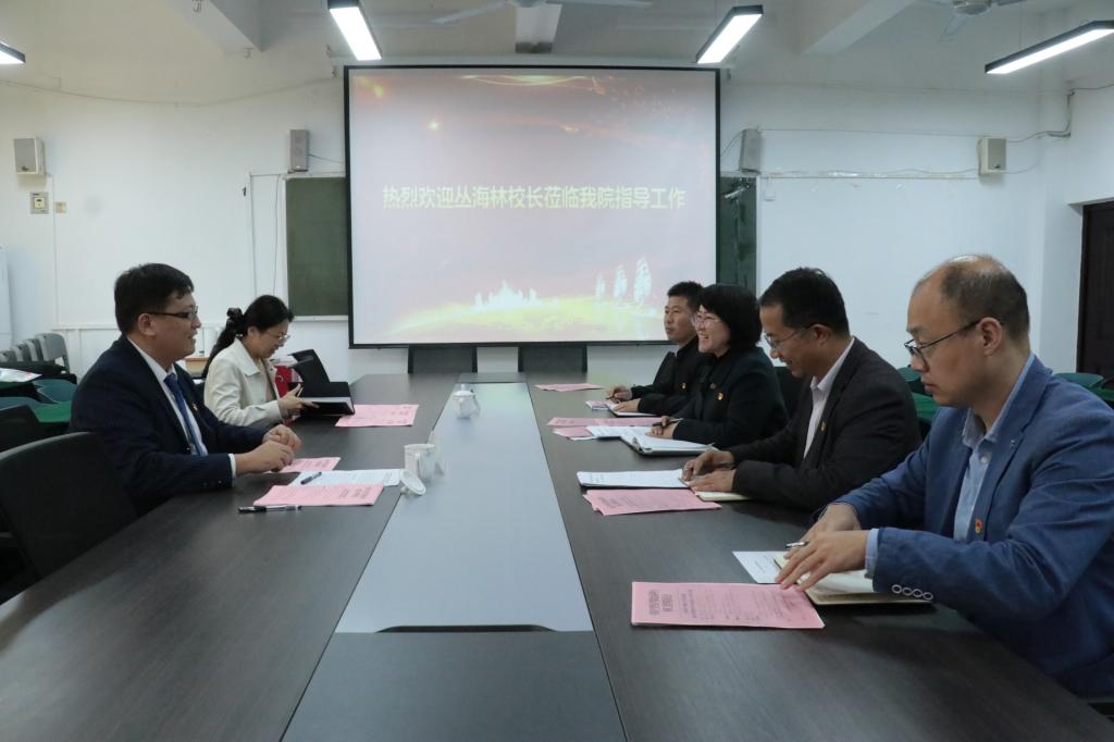 11月4日下午,学校党委副书记、校长丛海林到买球官方网站列席旁听党委理论学习中心组集体学习、党委会议和党政联席会议,并对会议开展情况予以点评指导。校党委(校长)办公室副主任、巡察办副主任黄珊珊陪同参加,学院领导班子全体成员参加会议。学院党委书记华莹、副院长杜健分别主持会议。