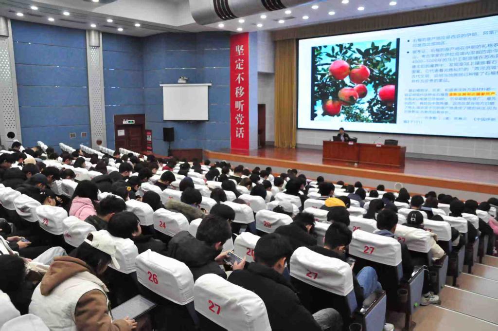 为深入挖掘石榴文化的时代价值,铸牢中华民族共同体意识,12月3日,买球官方网站举办“石榴文化润校园,精神传承启新程”专题讲座。本次讲座由陶道强教授主讲,学院全体教职工和学生代表200余人参加。