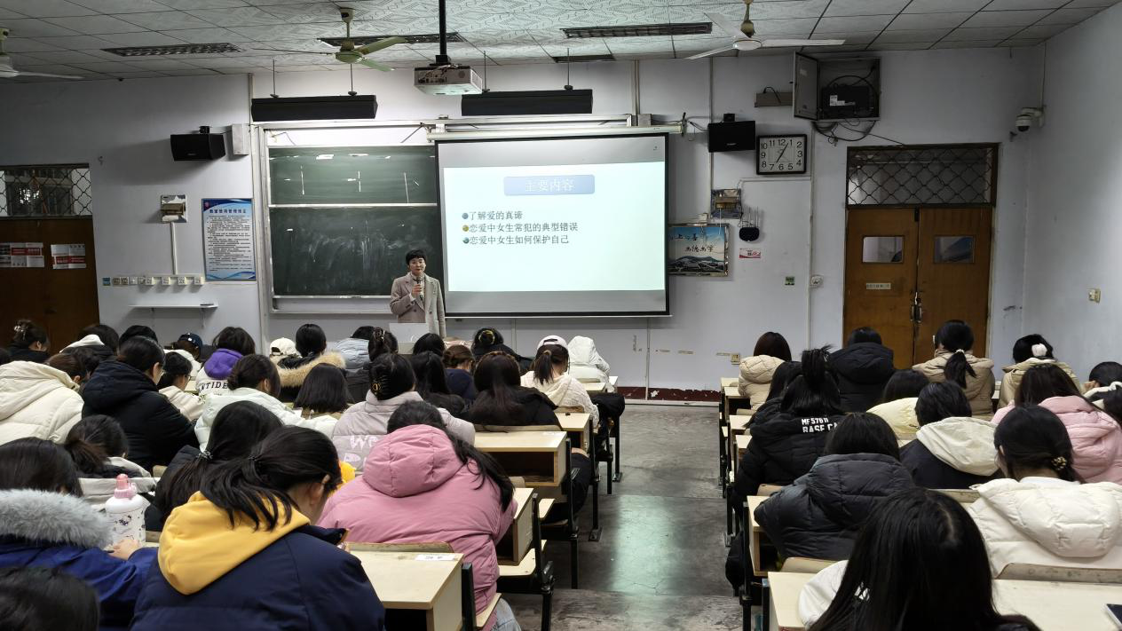 讲座围绕女性生殖健康展开,周老师运用通俗易懂的语言讲解女生生理卫生常识、常见健康问题预防及自我保护技巧,帮助女生科学认识身体发育规律,增强健康防护意识。在此基础上,讲座围绕恋爱教育展开探讨,周老师结合大学生恋爱心理特点,从情感认知、沟通相处、责任担当等方面展开分享,引导女生树立平等尊重、理性成熟的恋爱观,学会在情感相处中保持独立人格、恪守原则底线,营造健康和谐的亲密关系。
