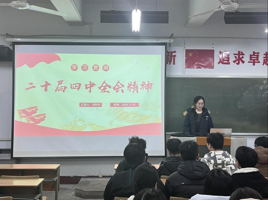 为全面学习贯彻党的二十届四中全会精神,凝心聚力落实“十五五”部署,12月18日买球官方网站“石榴红映初心 青年魂铸精神”第四期中国精神宣讲活动顺利开展。本次活动旨在引导青年学子深刻领会全会精神,把握“十五五”时期发展蓝图,将专业学习与国家战略紧密结合,为推动中国式现代化建设贡献青春力量。