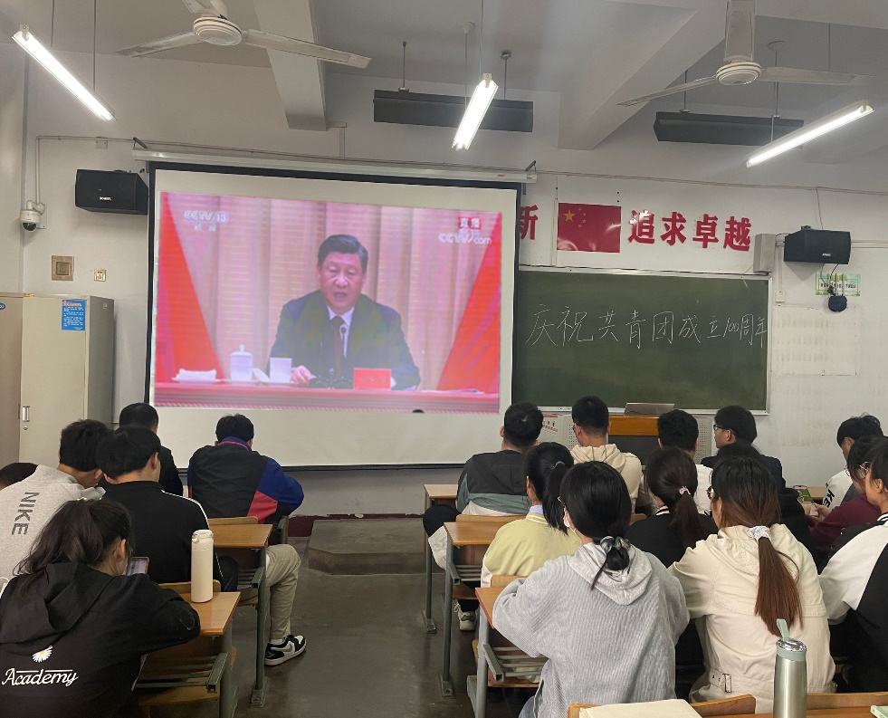 为学习贯彻习近平总书记重要讲话精神,深刻领悟共青团百年奋斗历程的宝贵经验,激发青年学生奋进力量,5月10日,买球官方网站在文科楼教室组织2021级全体学生观看庆祝中国共产主义青年团成立100周年大会直播。