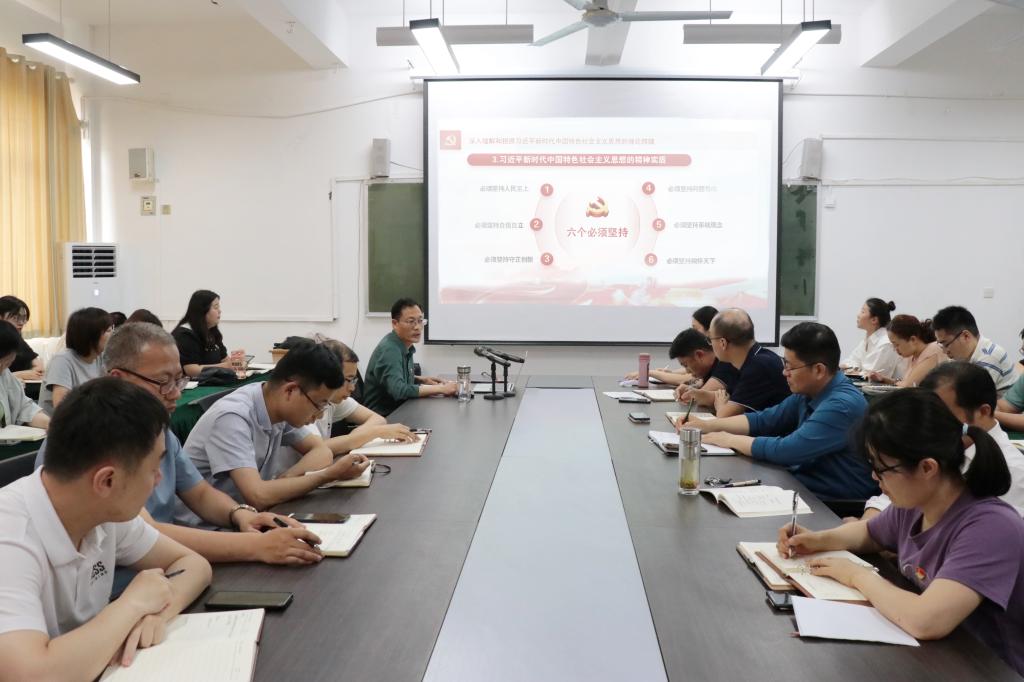 为推进主题教育走深走实,按照学校“三个一百”主题教育专题党课工作安排,6月7日下午,买球官方网站党总支书记滕聿峰在文科楼213会议室为全院师生党员讲授以《在主题教育中,领悟和把握习近平新时代中国特色社会主义思想的理论精髓》为题的主题教育专题党课。