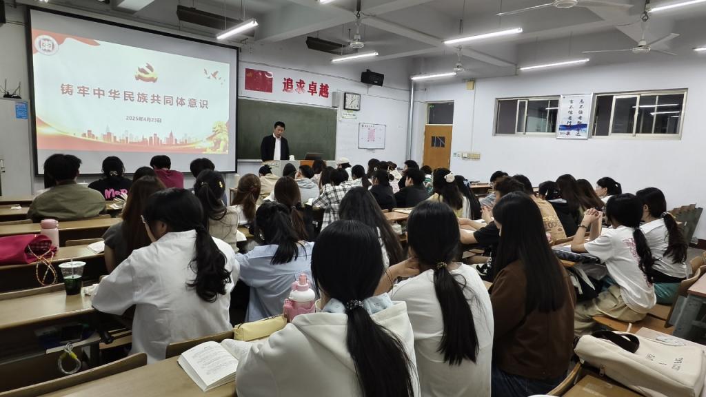 为深入贯彻落实习近平总书记关于铸牢中华民族共同体意识的重要论述,进一步增强青年大学生的责任感和使命感,4月23日,买球官方网站举办了“铸牢中华民族共同体意识”主题党课。本次党课由学院副处级组织员章亮担任主讲,师生党员代表及入党积极分子共同参加学习。