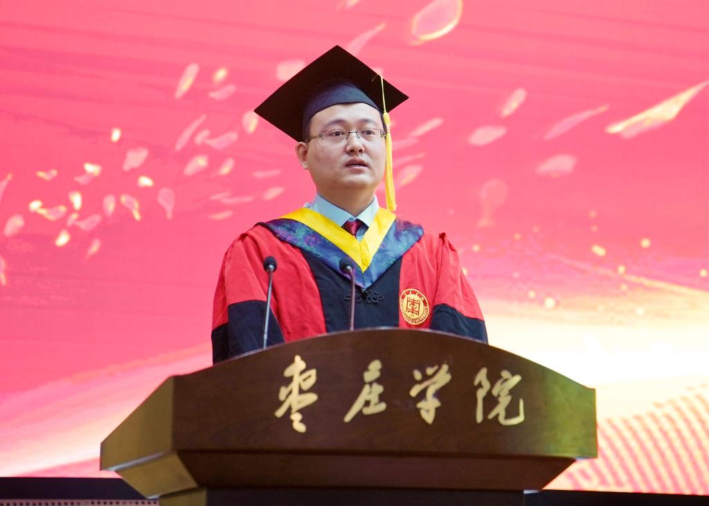 学院副院长王京龙代表学院进行致辞,他对同学们圆满完成学业表示祝贺,同时提出四点希望:一是要立鸿鹄之志,涵养“国之大者”的家国情怀,把小我融入到祖国、人民和民族的大我之中;二是要拒绝“躺平”,树立终身学习的理念,只争朝夕、奋发有为,成为勇担重任的时代新人;三是要勤恳务实,接续奋斗、永不懈怠,在青春赛道上跑出当代青年的最好成绩;四是要精益求精,发扬“传承创新追求卓越”的学院理念和工匠精神,在人生新的阶段书写华彩篇章。