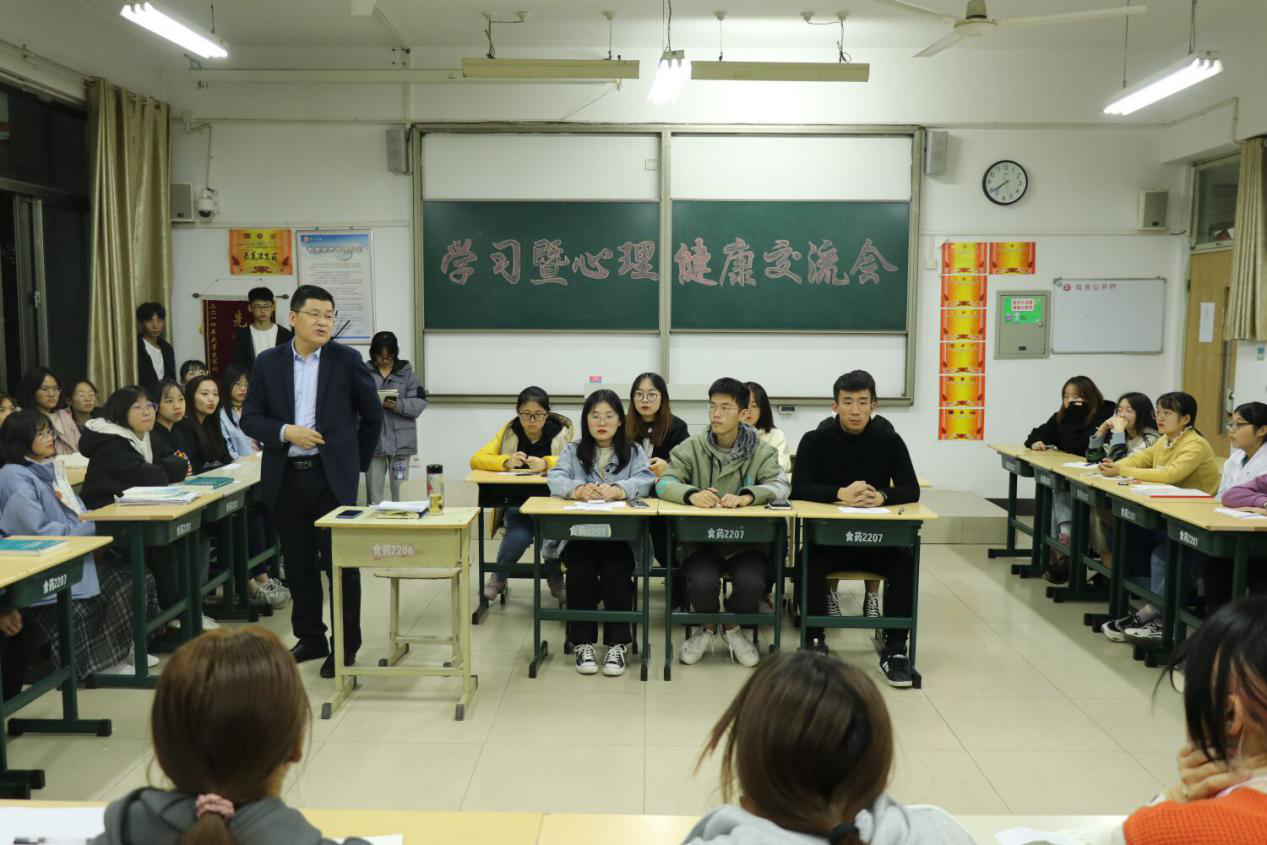 11月13日晚,买球官方网站分专业组织开展学习经验座谈交流会,高年级优秀学生代表到2020级各班进行座谈交流,为大一新生解疑答惑。院党总支副书记周玉亮到各班进行指导发言。