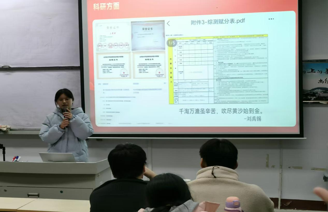 会上,国家奖学金、国家励志奖学金、山东省政府奖学金、山东省政府励志奖学金等多位奖学金获得者结合自身经历,从学习方法、科研探索、社会实践、时间管理等多个维度与广大学子进行了深入的分享与交流。激励同学们要主动配合导师、参与科学研究,要积极参与各类竞赛、社团活动,不断拓宽知识边界,实现个人价值和社会价值的双重提升。