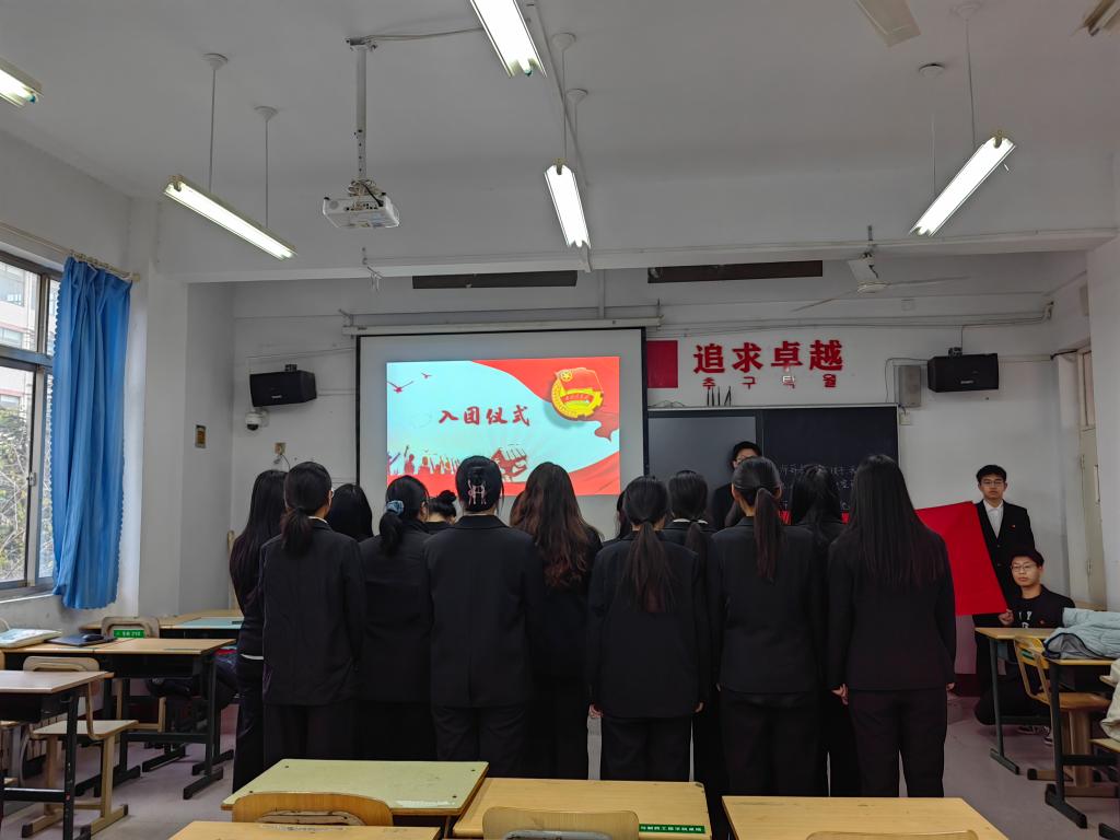 在今日庄严的入团仪式上,大家共同见证了新团员们成长的重要时刻。首先,与会领导和老团员代表为新团员们颁发团员证和团徽,象征着他们正式成为共青团的一员。其次,新团员们在团组织负责人的带领下持立正姿势,面向团旗,右手握拳,举过右肩,跟随领誓人逐句领读入团誓词。宣誓过程中,每一位新团员都神情庄重,声音洪亮,他们用自己的誓言表达了对共青团组织的忠诚和对共青团事业的热爱。最后,全体新团员们奏唱中国共产主义青年团团歌。