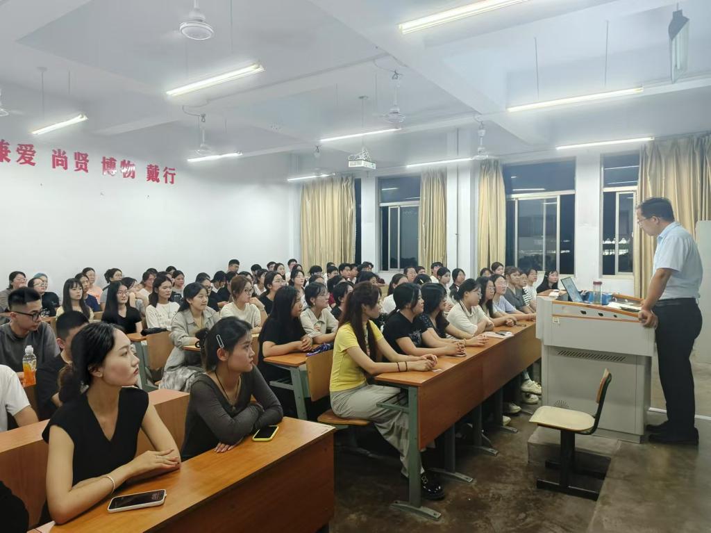 黄成亮从什么是西部计划、西部计划政策解读、西部计划服务内容、如何参加西部计划四个方面进行了讲解,并对今年西部计划的政策方向、内容等做了深入的介绍,用优秀志愿者事迹让同学们看到了众多学子奉献青春建设西部的坚定信念。黄书记还结合个人“援疆支教”带队教师经历,通过视频的方式让大家聆听了西部计划志愿者的心声,他们从事于基层、乡村教育、乡村治理专项等领域,用实际行动弘扬了奉献、有爱、互助、进步的志愿服务精神,在祖国西部播撒爱和奉献的种子,让在场学生备受感动和鼓舞。
