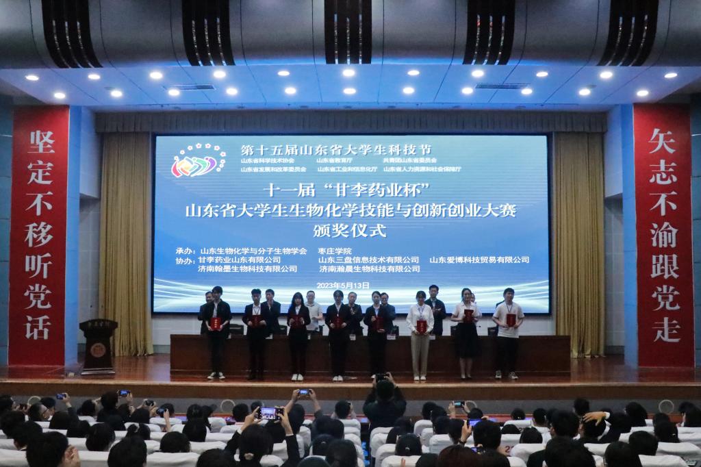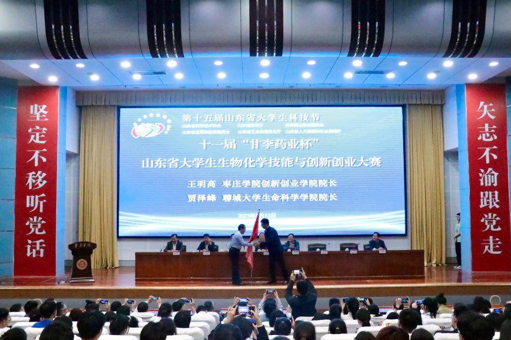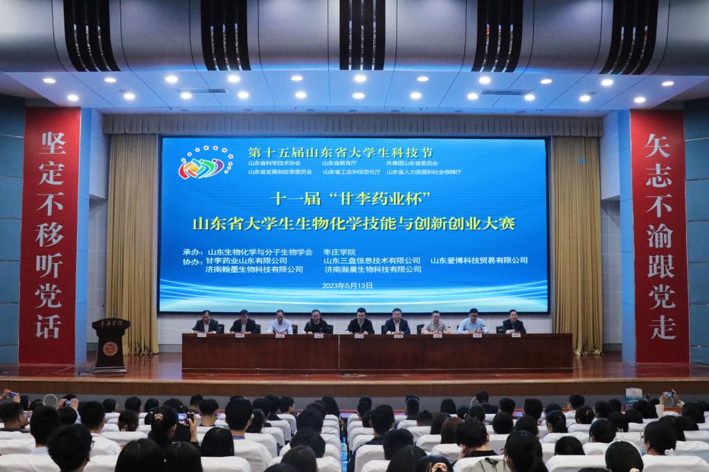 5月13日,第十五届山东省大学生科技节——第十一届“甘李药业杯”山东省大学生生物化学技能与创新创业大赛决赛在买球官网举行。山东生物化学与分子生物学会副理事长王林、山东生物化学与分子生物学会专职副秘书长王世立,校党委委员、副校长丰雷,甘李药业人力资源总监刘常军出席大赛开幕式并分别致辞。校党委委员、宣传部部长张昌林出席闭幕式并致辞。学校创新创业学院、买球官方网站、生命科学学院党政负责人共同出席。