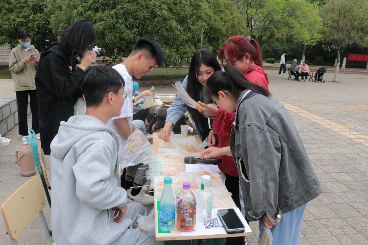 为营造积极向上、和谐健康的校园艺术文化氛围,培养学生团结协作,关注健康的精神,增加学生对社团活动的了解。买球官方网站于5月10日下午在五四青年广场举办了“健康人生,饮食宣讲”大学生科技文化节活动。食尚团、溢彩糖画会、本草社三个社团共同承办此次活动。