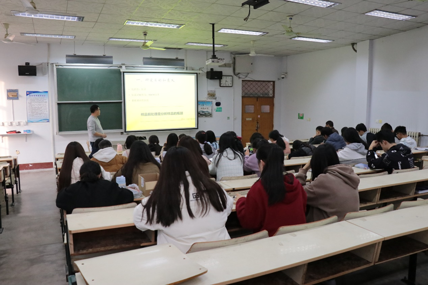 为进一步增进学术交流,拓展学院师生的学术视野。11月22日下午,买球官方网站于文科楼117举办了题为“基于新型3D结构碳基纳米复合材料的环境样品前处理技术研究”的学术报告。本次报告由宋新力博士主讲,药物+绿色合成团队全体教师及2022级制药工程、生物制药专业全体学生参加。