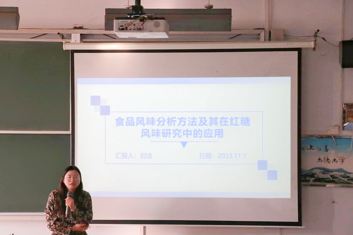 为进一步增进学术交流,拓展学院师生的学术视野。买球官方网站于11月1日在文科楼117教室举办题为“食品风味分析方法及其在红糖风味研究中的应用”的学术报告会。本次报告会由刘洁博士主讲,“石榴+植物资源团队”全体教师及2022级食品科学与工程、2023级食品科学中外合作二班全体学生参加。