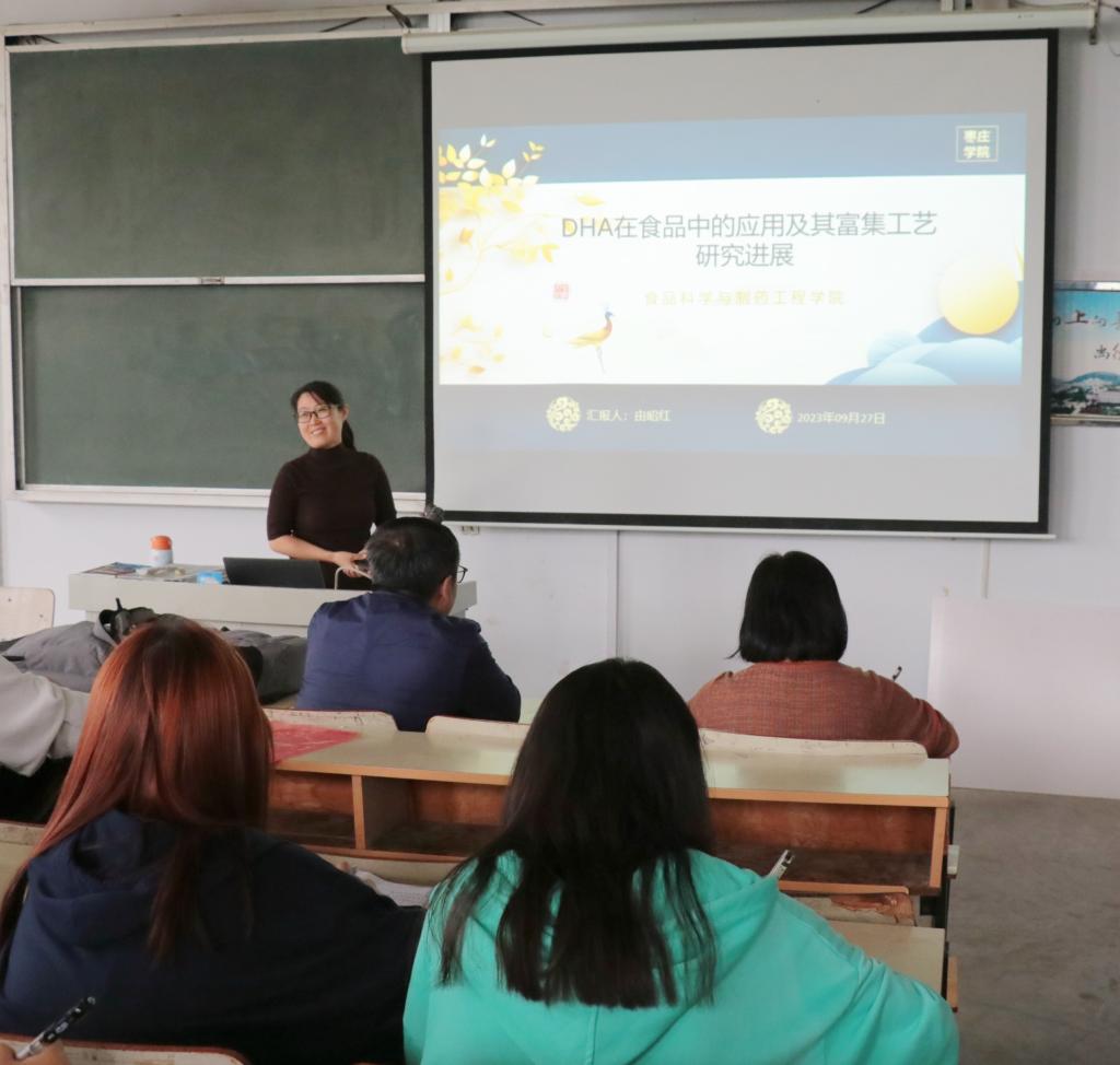 为进一步增进学术交流,拓展学院师生的学术视野。买球官方网站于9月27日在文科楼117教室举办题为“DHA在食品中的应用及其富集工艺研究进展”的学术报告会。本次报告会由由昭红副教授主讲,智慧生物医药科研团队全体教师及2021级、2022级食品科学与工程专业全体学生参加。