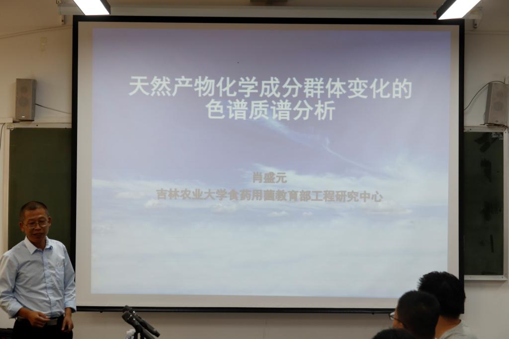报告会上,肖盛元以质谱分析仪的技术原理、种类与特点三个方面内容展开,介绍了质谱分析仪的分析原理与技术发展,阐述了不同质谱仪的特点和优势,分享了质谱在区分天然产物化学成分的分析应用。报告结束后,肖盛元与参会师生进行了深入交流,并对师生们提出的问题做出了耐心解答。