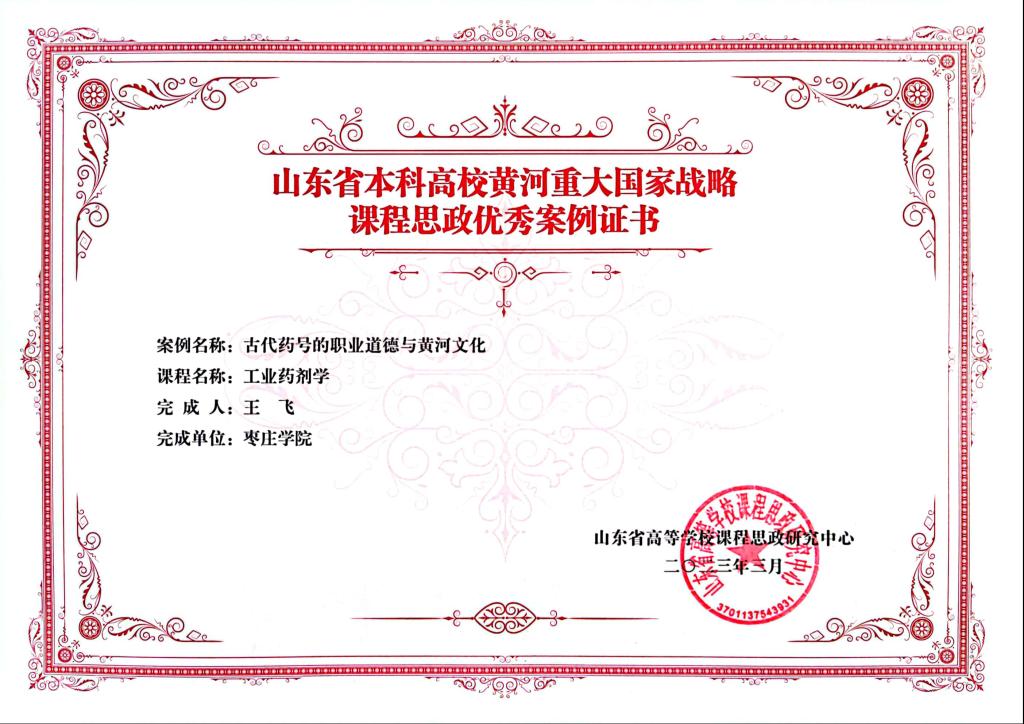 近日,山东省高等学校课程思政研究中心公布了山东省本科高校黄河重大国家战略课程思政优秀案例名单,买球官方网站《工业药剂学》教学团队申报的《古代药号的职业道德与黄河文化》名列其中。