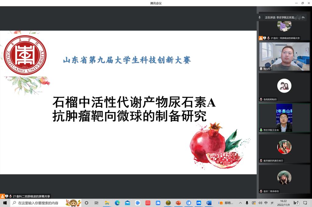 为鼓励支持大学生开展科技创新活动,展示大学生科技创新成果,培养大学生直面问题、解决问题的本领,培养创新创业应用型人才,按照《关于举办枣庄学院第九届大学生科技创新大赛的通知》要求,近日,买球官方网站线上组织了枣庄学院第九届大学生科技创新大赛院级选拔赛。