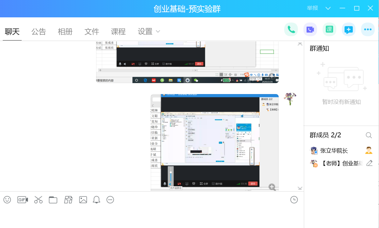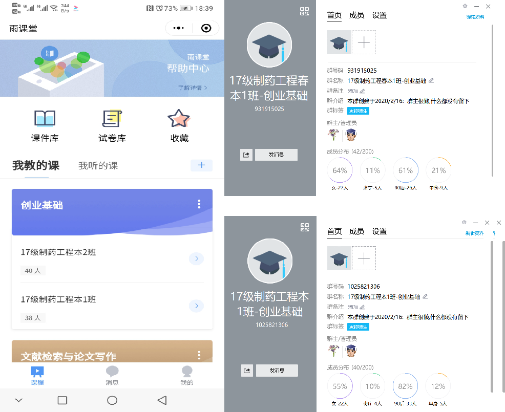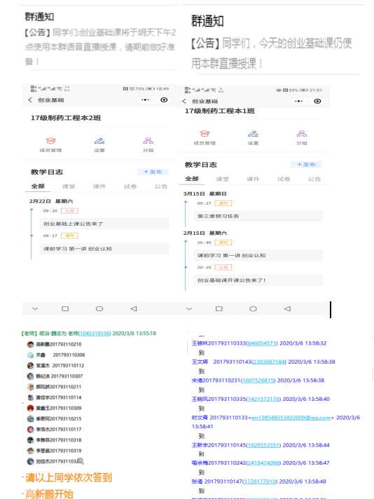 正式上课前一周,分别在雨课堂和QQ平台建立以班级为单位的群,联系学习委员组织同学进入相应的课堂群,确保每一位同学都能正常开展线上学习。