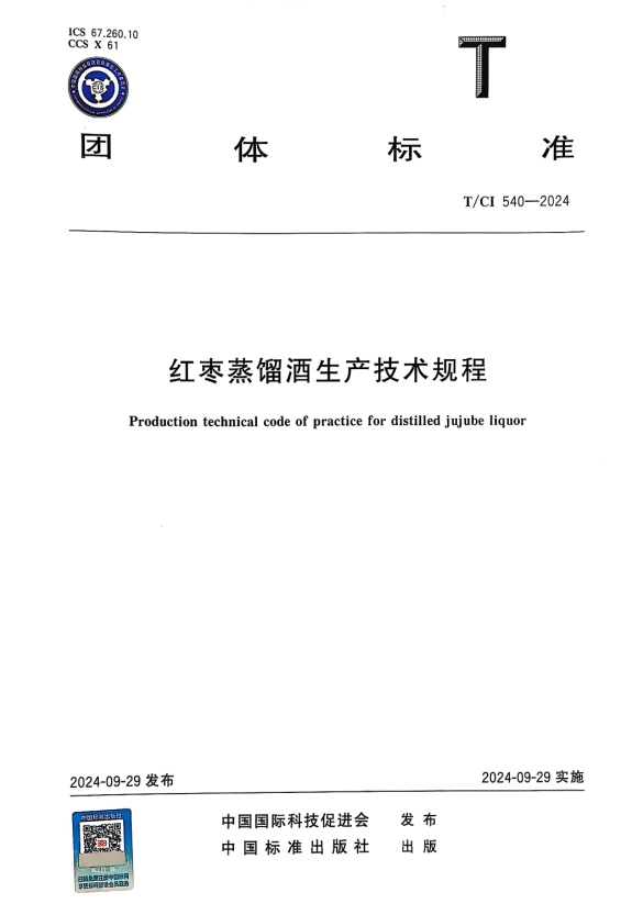 《红枣蒸馏酒生产技术规程》团体标准历经研发、起草、征求意见、评审、修改、审查、批准及备案等严格流程,由中国国际科技促进会标准化工作委员会审批通过。该标准的制定旨在解决当前市面上红枣蒸馏酒质量参差不齐、甲醇含量高、风味标准化程度低等问题,为红枣蒸馏酒的生产提供统一的技术规范。